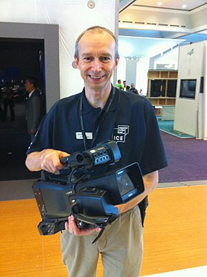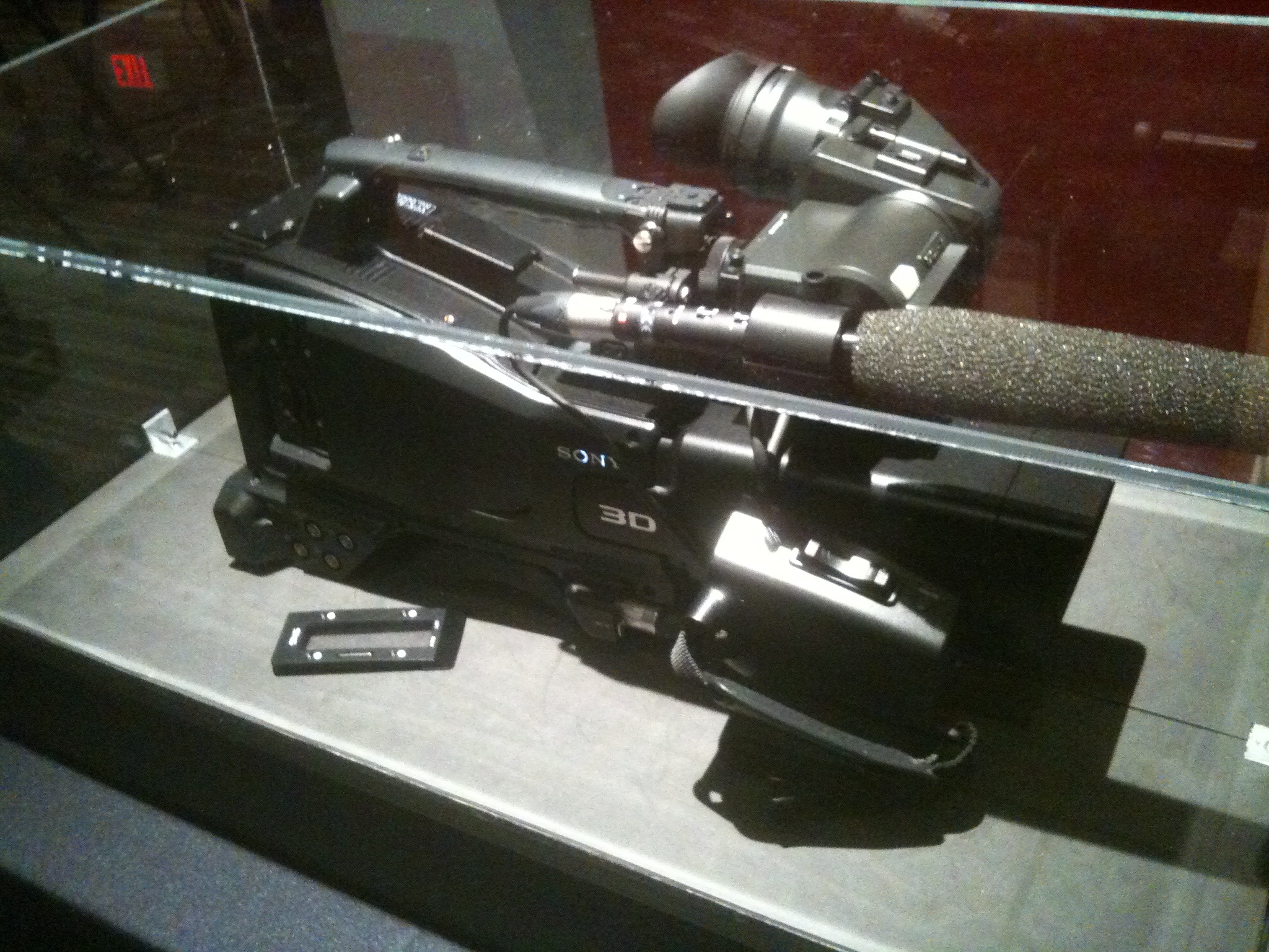 I've seen this in a glass display case twice since IBC. From the looks of it the interaxial is about the same as the 3DA1... maybe even bigger. This is a full-size pro camcorder so the scale makes it appear that the stereo-base is smaller.