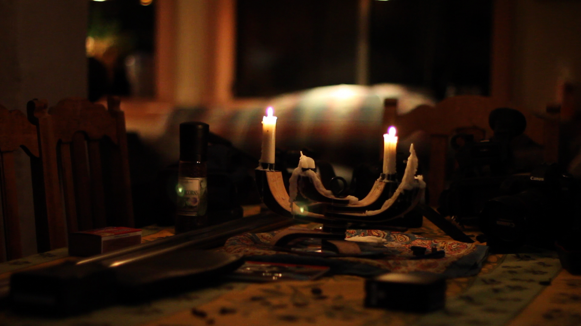 Both were on M 50mm 1.4 at F1.4 1/60 ASA 1600 auto WB. AF on the left candle before shooting. I am also uploading the actual raw videos to my server. I will post a link to them in a while. These are .jpg at highest quality frame grabs from a slow dolly shot, 7D on left 5D on the right. |