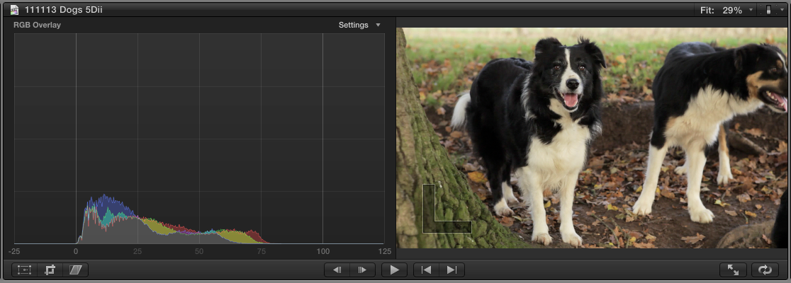 FCP X is awesome - but still a little quirky and there are some important features missing (such as an easy way to reconnect clips if the media goes offline) but it's definitely way, way better than FCP 7 (and I was a big fan of the old FCP). When you import files into FCP X you have the option to convert them to ProRes 422 on import - but because my MacPro can edit and playback XDCAM EX natively, I have not bothered until now, but I'll make a point of importing the EOS 5D footage as PR 422 to see whether that helps. Colour grading with FCP X is vastly improved too, so I'm hopeful I can cope with the 5D footage. Ironically, one of the reasons I want the 5D mk2 is to INCREASE my depth of field (i.e. everything in focus). When we're shooting fast-moving dogs, it's hard to keep them in focus with a camera that's basically limited to iris settings smaller than f4.5. From what I've seen (mainly Panasonic and Sony) image quality falls off very sharply on all prosumer cameras at anything smaller than f5.6 and anything over 6.7 is totally unacceptable. To be honest, I think it's very dishonest of manufacturers to claim their lenses cover iris settings of (say) f1.6 to f16, when in fact the resolution is absolute rubbish at most of that range. I guess they get away with it because it's too technical for the trading standards people to understand - especially when you bear in mind that "depth of field" is now the commonly used term for "shallow depth of field". My camera equipment supplier recently told me about a customer who said "I'm going to shoot some depth of field this afternoon". (Oh dear, am I ranting again)? Anyway, my point is, that the Canon EF lenses give excellent resolution at the middle of the aperture range and are perfectly acceptable right up to f16, so I'm hoping this will help us keep the dogs in focus - ironic when you consider that probably 95% of buyers invest in the same camera for the opposite effect!