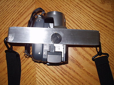 Threw this together for you this afternoon, to show what could be done. Probably weighs an ounce maybe two. I used a strap off an old bag. Another approach would be to make a small adapter/bracket that would attach to the hot shoe on top. Then offset it to the right and forward to balance it out. Sorry for the crummy pictures, especially the mirror shot, but I did not see it as necessary to put a lot of time in on pictures. Mike