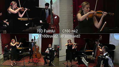 hi everyone. I will be videotaping a musical performance under controlled lighting situations soon and I decided to cover it with my 4 cameras- a Canon C100, a XF100, a XF300 and a 70D.