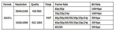 Still puzzled as to the 4:2:0 for Long-GOP in 4K. This essentially makes it XAVC-S. But I guess you get more audio flexibility in the real XAVC format rather than XAVC-S.