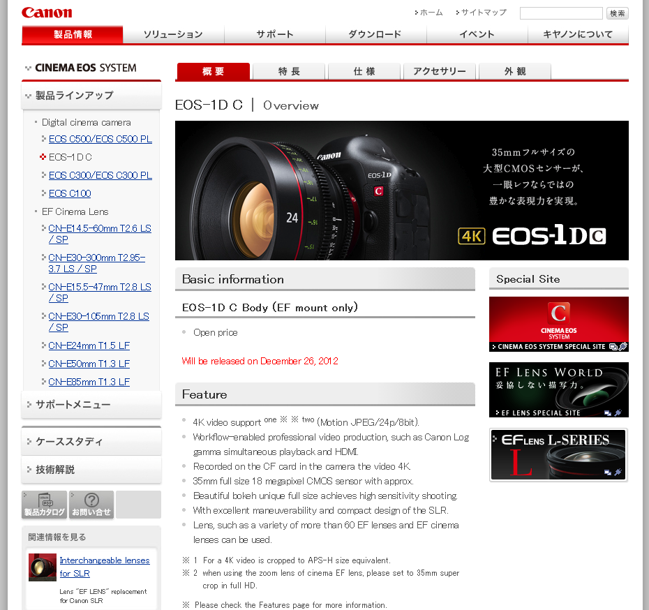 Canon Japan CINEMA EOS SYSTEM EOS-1D C We are hoping to start shipping next week! |