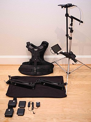 Asking $2,800 INCLUDED: The carrying case Allen Wrench for the telescopic post Monitor and two rechargeable batteries Leveler on the post Dual articulated arm Vest Low mode Extra wight plate included. Extra images are available upon request. With an impressive and unique array of standard features, the Aviator is the ultimate system for professional cameras 5-15lbs. Dual Dynamic Arm - The Aviator's dual arm system is extremely fluid, lightweight, and solid. It can bear cameras 5-15 pounds swiftly and smoothly and offers up to 38" of vertical travel. Power, Vision, Balance - At the base of the sled, a 7" 16:9 NTSC/PAL color monitor serves as a large external viewfinder. A proprietary Li-Ion battery w/ LED capacity indicator is standard. The monitor and batteries serve as counterweight for vertical balance and their positions can be adjusted for fine-tuning. Contact Info: info@bluebonnetmediagroup.com Last edited by Inna Lantsman; April 30th, 2010 at 08:28 AM. |