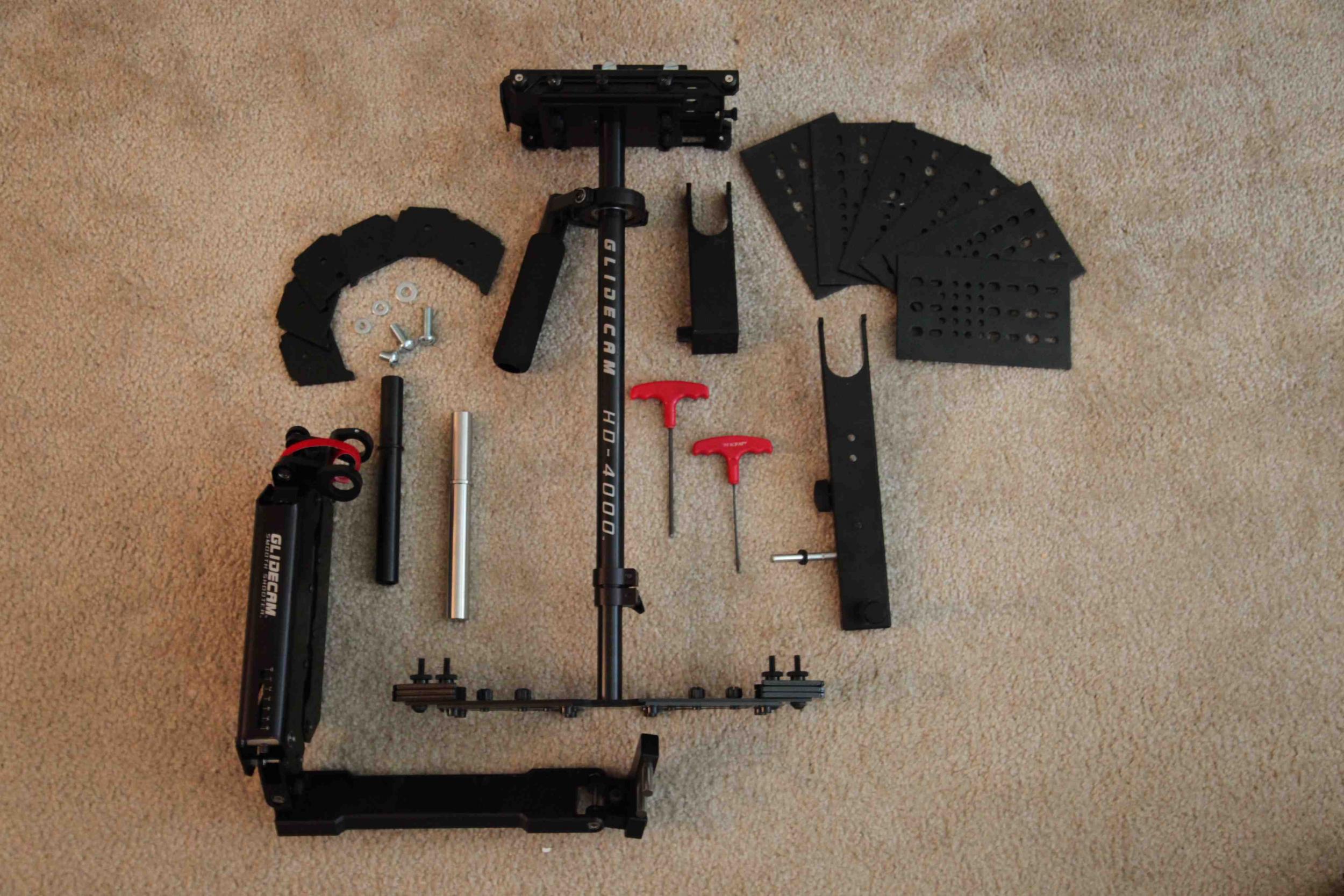 This kit features the smooth shooter vest and arm system with the HD-4000, counter weights, tools and two types of docking plates. (everything you see in the photos)
