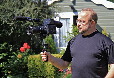 Hopefully still on-topic... this is my stripped down rig, bare basics. It's just the middle bit of a Zacuto Striker, and the removal of the wobbly handgrip. Ideally, the chimney gets removed and I get a Zacuto EVF on a Noga arm, as I found out to my cost, interviewing people 6 foot and above is just too hairy with the chimney. I was on tippie-toe quite a few times doing voxpops, and of course the interviewer was a petite young girl - usually I'd resort to rakish Dutch angles to fool the dominating eyelines (or something to stand her on), but client's brief: No tilty shots.So at least an EVF on a Noga will sort of match the EX1's pull-out-and-twist viewfinder panel when I need to have the camera above my eyeline. See, it IS on topic!