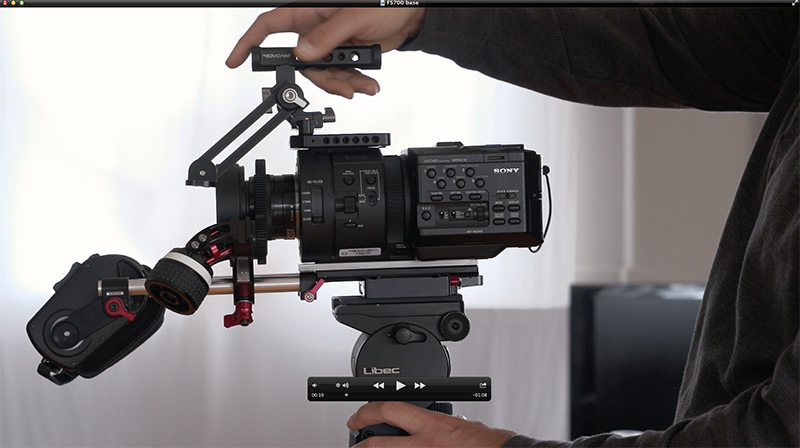 I just looked and unfortunately the only shots taken of the rig were from the rear, when it was on my shoulder. I'll build it tonight and take some more revealing shots. One thing you can tell from these is the follow focus is mounted to the right side of the camera. Weird I know, but without purposefully adding weight to the back of the camera you really have to slide the FS700 rearward to balance it on your shoulder. This can put the lens pretty close to your chin so I turned my follow focus around and went from the right side instead. It is doable, shooting this way, but mounting the Odyssey on one side of the camera put more weight on the grip of my right hand, so reaching up to focus took extra effort with my left grip first. Not really ideal. I should put the Odyssey in the back instead. Only reason I had it on one side is so I could glance up to my right and confirm it was recording/had space on the cards/had battery life left. |