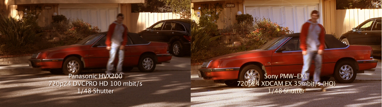 Agreed. For giggles, I warmed up (adjusted white balance) the EX1 and HVX200 in two examples. I down-sized for comparison.