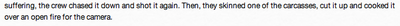 "....Then, they skinned one of the carcasses, cut it up and cooked it over an open fire for the camera."