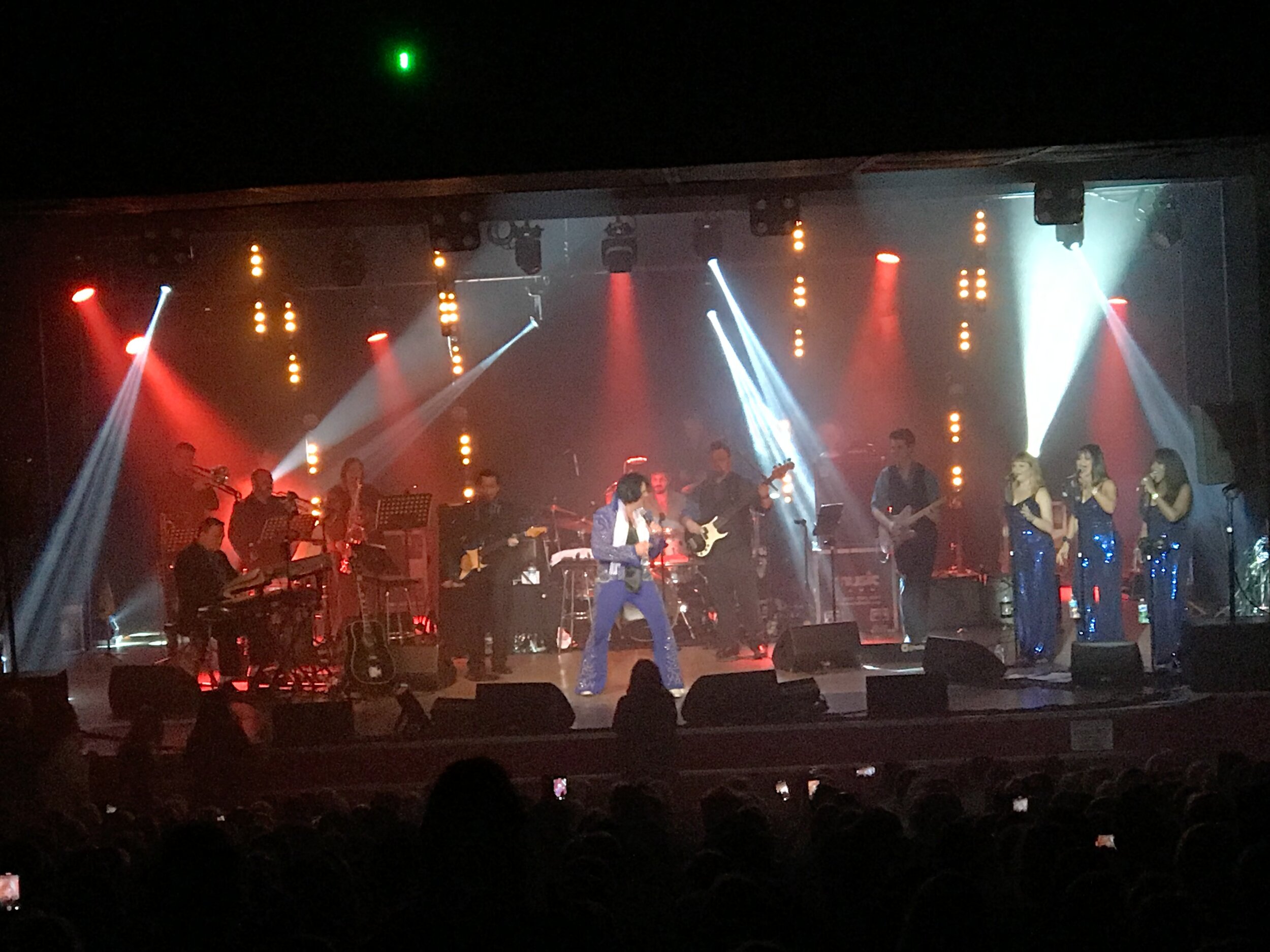 I suppose the snag really is that everyone needs to be on the same page. The video people working hard correcting what they see as a mistake and the theatre people furious at the distortion such ‘repair’ causes. Last night’s Elvis show did have one common colour temp, the colour of the follow spots, but the follow spots are fitted with a magazine of warm and cool tints. CT blue actually being one of the,, mainly because I wanted a very light blue, and the lighting designer/operator swapped between an amberish pink and the blue on different songs. The vertical sun strips are actually white but 3200k white, so look warm on an LED rich stage. The blinders are also white, but a different one. This is a really useful discussion and while I suspect there wont be an absolute agreeable outcome, the different views will come in handy when discussing aims with producers. This was the last night of the tour, so the producer was actually there and interfered pretty well constantly. I was sitting the furthest from the stage and the sound level peaked at just over 107dB, so God knows what the folk at the front got! Nobody could hear themselves think on the comms. Anyone pressing their mic button killed everyone stone dead.