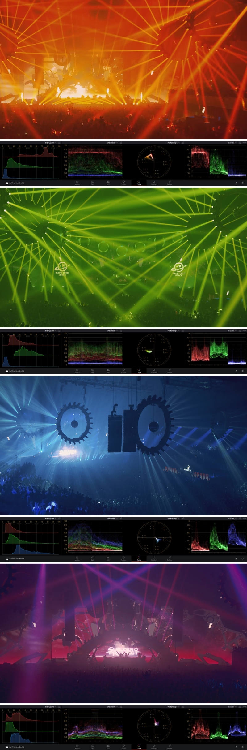 I TD'ed A Guns N' Roses concert video OB with awesome lighting design some years back and believe me we couldn't put a show like that to air with non-legal levels. The TV links and transmitters cannot handle it. Have a look at what serious lighting designers do. The biggest problem I find with a lot of stage lighting people is they have never been taught to light for video, only a sitting audience. In cases like this, we tell clients, when booked to do their video coverage that if they want top quality lighting for both the sitting venue audience AND video coverage, for broadcast, or for sell through media, they should book a good qualified lighting designer who knows how to light for both stage and video at the same time. They do exist. I explain to the client, why are you going to all this cost on the production only to jeopardize your sell through media revenue by having lighting that is going to cause issues for the video side of your productions. One large theatrical company we contracted to for nine years, shooting between fifty and sixty-five concerts a year in the largest stadiums across Australia had disc sales in the order of 5-7000 per concert. They discovered if they had decent lighting design that the video post-production costs went down. As far less time was spent on trying to beat the shows into shape for broadcast and sell through media. Out of all the shows, a number of two-hour specials events were made for TV from all the competing regional events. So costs were important. For illustration’s sake, I've grabbed a still frame from a lighting training video, which has some examples in it of stage concert lighting design. I threw this onto a Resolve timeline and what did I find. What I expected. Legal levels for video, even in their training videos. And yet great lighting design and effects for concerts. And I mean big concerts. They are Martin<dot>com. Also below is a link to a good lighting BTS from ARRI showing how you can use the wildest outrageous colors and deliver awesome lighting design and effect but still remain within the accepted standards. Also, I had a tweak on the Elvis pix. Whilst keeping a similar feel to the lighting design, it can easily be brought into legal shape. This what we have to do when we are confronted with out of gamut stage lighting for video productions. See sample pix. Chris Young https://www.martin.com/en-US/markets/entertainment Last edited by Christopher Young; October 16th, 2022 at 07:26 AM. |