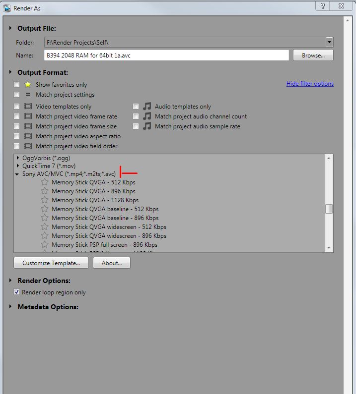 Having used VP12 successfully for a couple of months, I'm now finding that the Sony AVC/MVC option has disappeared from the 'Render As' list.