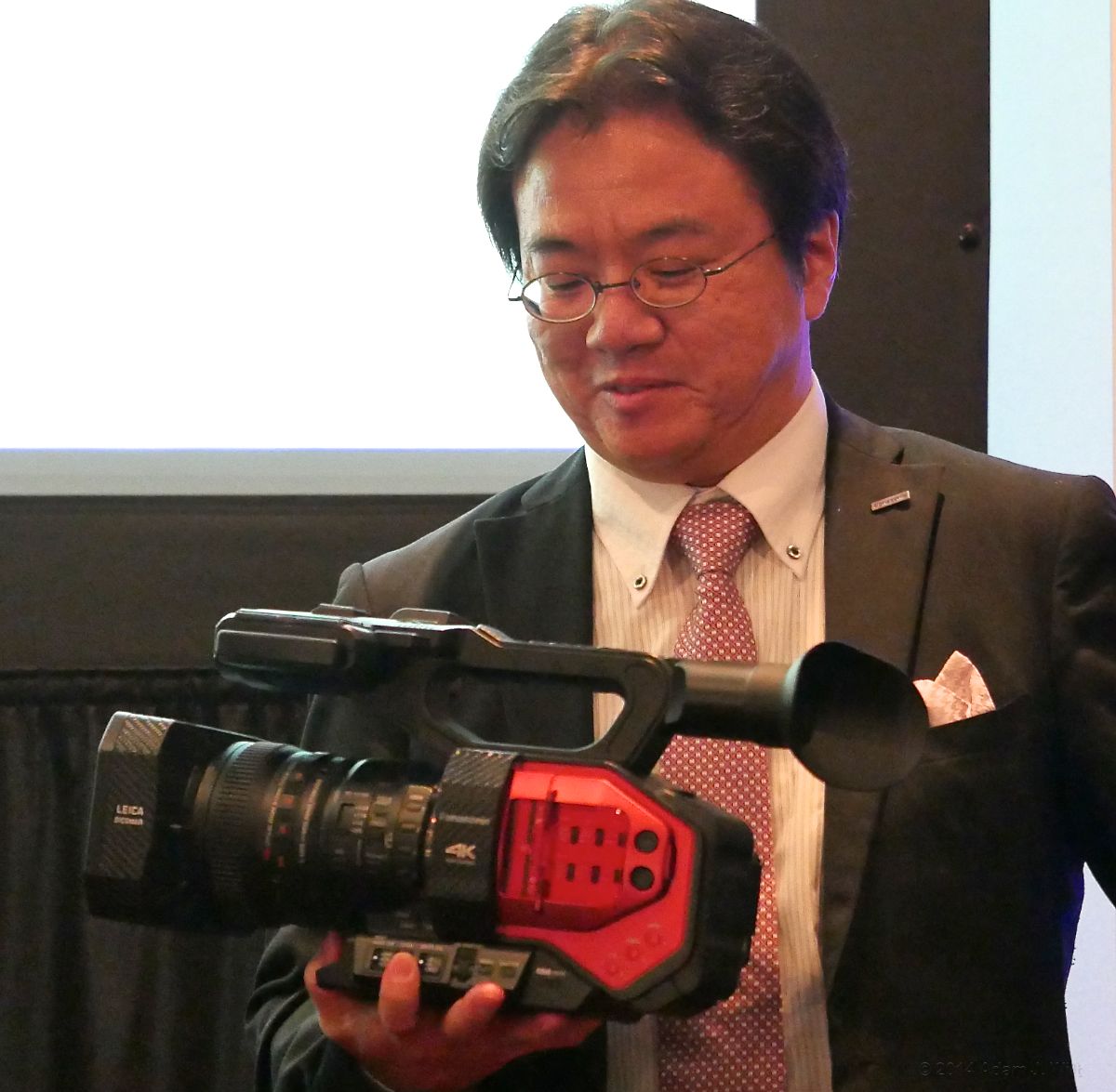 Specs: 4K 60p capable, 4/3″ imager, fixed 13x Leica Dicomar lens, 5-axis stabilization, 12 stops latitude, requires UHS Speed Class 3 SD card for 4K recording, V-Log gamma curve. Available in the fall of 2015 for a suggested price under US$5,000.