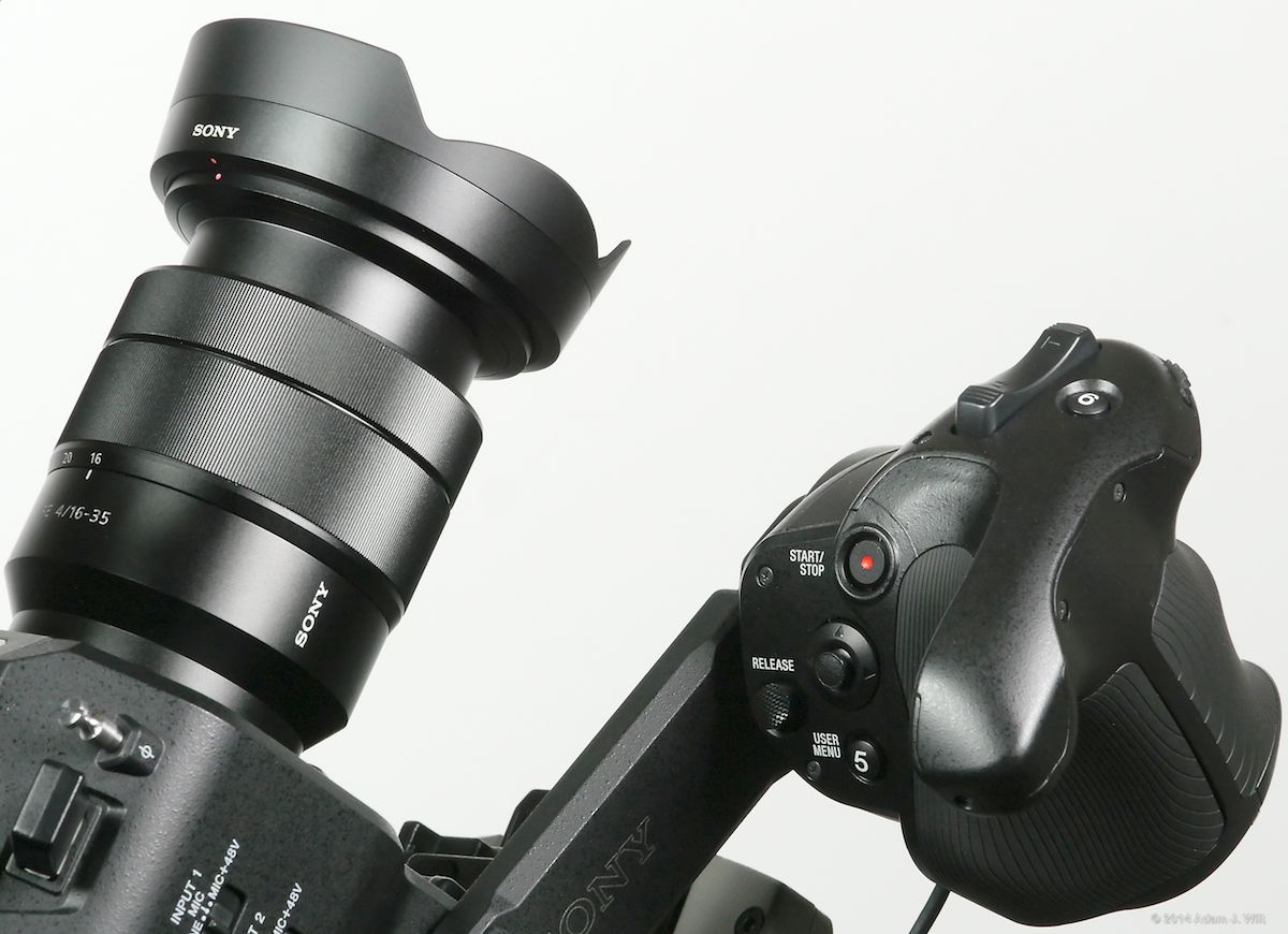 What’s telling is that when I’ve pulled the SmartGrip off the camera, I’ve really missed it, even when I’m sitting with the camera in my lap or operating it on a tripod. Having the grip’s assignable top button set up for focus mag and being able to zip through menus with the grip’s 4-way controller make the camera much faster to use than when I have to fall back on the small and fiddly Handycam-style buttons on the side of the FS7. Without the SmartGrip, the FS7 feels like the flatfish cousin of the FS700: the FS700’s controls have migrated to the FS7’s left side, but they’re the same things: small, black plastic buttons and thumbwheels scattered about on a flat surface, with insufficient tactile differentiation to allow successful eyeballs-elsewhere operation. The SmartGrip by its nature is a tactile control surface, and It Just Works.