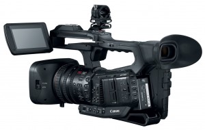 The XF200/205 may well represent “the best of both worlds” by combining some popular features of its big brother, the XF300/305, into a medium-sized body. It is a single-CMOS camcorder like the XF100/105 but it has three control rings on the lens barrel for zoom, focus and iris. The 20x lens is the longest focal length in the XF line and stops down to only f/2.8 at its maximum zoom, which is equivalent to nearly 600mm in 35mm terms. The XF200/205 records Full HD at 50 Mbps in the MXF file format to two Compact Flash cards, and an SD card slot is provided for a third simultaneous MP4 recording. There are thirteen assignable buttons, LAN, WiFi with IP streaming capability, and a rotating hand grip. The XF205 adds four jacks, for 3G-SDI, GenLock, TimeCode and composite analog video output.
