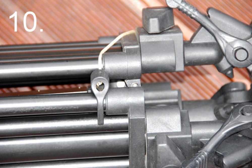 Firstly, the leg lock for the bottom stage is situated at the bottom of the middle stage, which means, in practice, that with the closed tripod feet resting on the ground, that’s where you have to bend to undo them. Those challenged in the lower back department, as am I, will find this a pain, literally. (photo 7.)