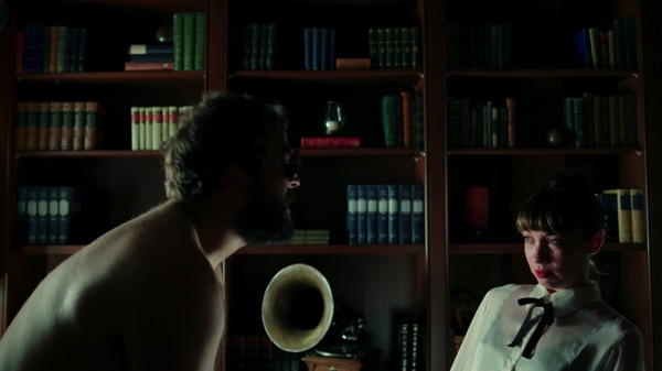 There was no need to use a back light in either of these shots as there’s a fair bit of separation between the actors and the background, especially on the fill side where the dark facial shadows stand out nicely against lit books.
