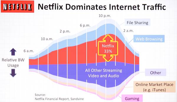 Netflix: the 44m hour/month gorilla: get content from others, create their own, get some from broadcasters. Bulk of ‘net traffic is video, bulk of that is Netflix.