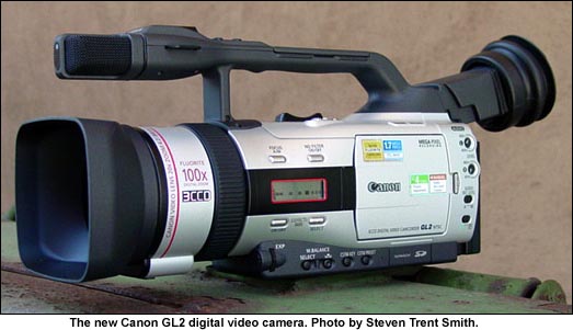 Whereas I would have put the GL1 and the Sony VX-2000 in the same class, what Canon has done with the GL2 makes it a serious competitor to the Sony PD-150, which uses 1/3" chips and costs about $1000 more. We made some side-by-side comparisons.