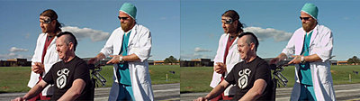 Much of JackAss 3D doesn't seem to be 3D, but there are parts that have some 3D. See the attached images - side-by-side and RC anaglyph. I didn't have the patience to actually watch the movie to see how much is 3D and how much is not.