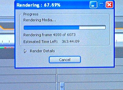 By the time I'd pulled out my stills camera to grab a shot - the numbers had plunged to a mere 363 hours! I know my system is old, but surely it can't be that sloooooooow!