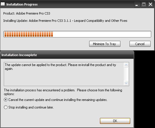 When I woke up, the updater was waiting to install the updates. I clicked OK... Anyway, every time in the past that I've had updates from Adobe, there's ALWAYS one update that doesn't work when it comes to installing. This time there were five: Adobe Reader Illustrator Encore Premiere After Effects Why did I waste so much of my monthly usage for something that I'm just going to have to do again? It made me so mad! Worst of all, it told me that Premiere would need to be re-installed!! The other programs just said that the update failed but didn't say that the product needed re-installing... Have other people encountered this? What should I do to get the updates? And does Premiere really need re-installing? EDIT: This could all be because I hadn't yet activated the software. Maybe... I don't really know. Last edited by John Hewat; January 12th, 2008 at 09:42 PM. |