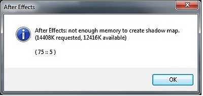 VIDEO COPILOT | After Effects Tutorials & Post Production Tools nothing too fancy. i've been working with CS4/windows 7 since it's first beta, I've used the Project template last week and it worked fine. Then it suddenly stopped working. Then I've reinstalled my OS but still no luck :( i've attached my AE ram settings. Little summation: - works if I disable motion Blur and Render within Premiere - does not render at all in AE (either the 'not enough memory for shadow map' or 'unable to allocate space for buffer' error) I hope you guys have an idea... *looking really sad at my deadline*