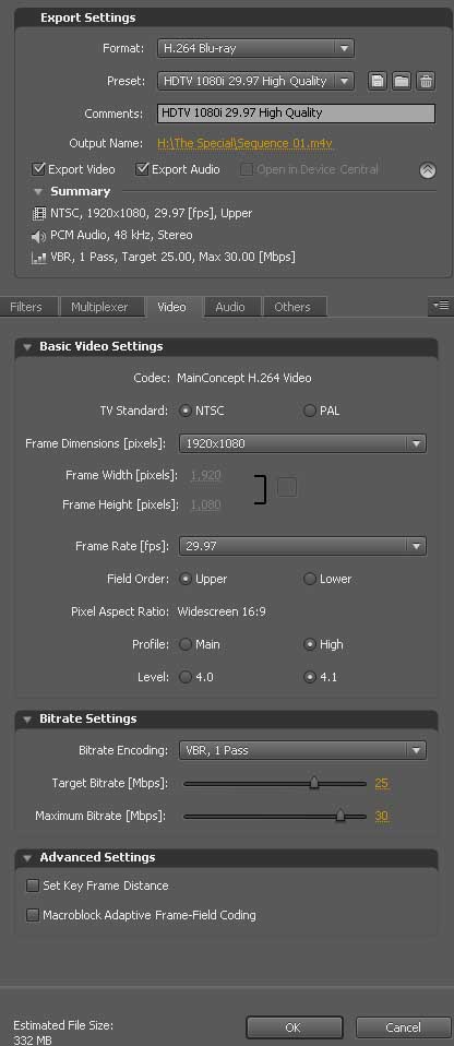 Rob - these are the export settings for the encoding I mentioned earlier. The original clip was 1080i AVCHD from a Canon HF10.