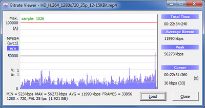 I started all my tries from "HDTV 720p High Quality" and from "Vimeo HD" preset and just changed very little, VBR2-pass and maximum bitrate. For the Vimeo preset of course I have to change the TV standard/frame rate, since I live in a PAL country. And in any preset I started with this behaviour is the same. For fun I just encoded my file in the Vimeo HD preset, changing nothing, so keeping NTSC, Main Profile with 3.1 Level, target bitrate 4 MBit, maximum bitrate 5 MBit. And guess what? It's just the same. Peaks are going as high as 25 MBit (with a maximum set to 5 MBit!). |