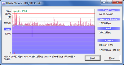 The problem with using Bitrate Viewer on any .m4v (H.264 Blu-ray) files is that regardless of the program used to create the .m4v to begin with, Bitrate Viewer will report the .m4v clips as being twice as long as the actual real-time length of that clip and thus will always report half of the actual bitrate encoded. (For example, Bitrate Viewer will report a 10-minute .m4v clip as being 20 minutes long; likewise, an hour-long .m4v clip is reported as being two hours long.) That is a bug in the current version of the Bitrate Viewer program. Remember, it was designed for MPEG-1 or MPEG-2 videos to begin with; it wasn't designed for H.264 until such support is slapped into the viewer program. With that said, if I based my result on the actual length of the video clip, the H.264 Blu-ray preset with the average set to 25 Mbps and the maximum set to 35 Mbps, it does not limit individual peaks. As a result, the average bitrate is very close to the 25 Mbps average despite being mis-reported as 12.x Mbps (based on my observation), and the individual peak (which was 40.5 Mbps on my particular clop) remains at 40.5 Mbps. Last edited by Randall Leong; November 4th, 2010 at 08:14 AM. |