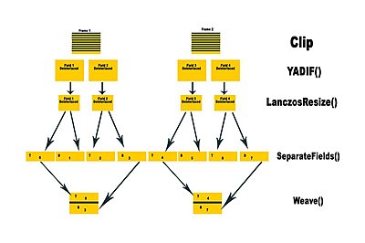 The only way to do proper downconverts is with third party softwares (AVISynth) Adobe needs to step up to the plate and take this issue more seriously.. Until there's a plugin to properly address field manipulation, deinterlacing, resizing and reweaving, nothing will come of Adobe's claim to "Better quality" downconverts. Heck, i can live with some artifacting that Eric mentions, but Adobe hasn't addressed the issue of properly dealing with interlaced sources. How does your deinterlaced Vdub transcodes look? Here's an old drawing i made, just to verify one of the scripts i used years ago, to better understand how resizing interlaced materials work. |
