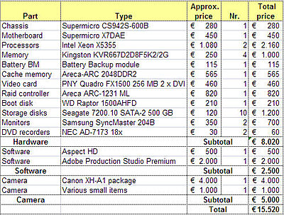 Recently someone asked what would be a nice investment for an editing PC, Adobe Production Studio and a camera package for less than $ 17K.