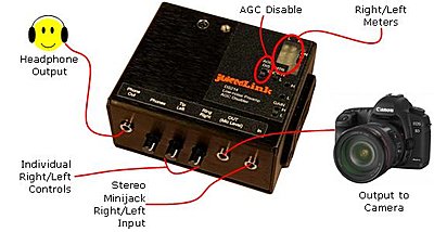 The juicedLink DS214 is a low-noise preamplifier with a 3.5mm stereo minijack input. There are high/low gain settings, and each channel (left and right) have individual potentiometer control. The output is an amplified mic level suitable for driving the mic inputs on cameras and recorders. Each channel (right and left) has its own dedicated meter with the ability to calibrate them (as different cameras and settings will require different calibration set points). The right and left channels combine for a mono headphone amplifier. For the Canon 7D and T2i cameras which do not have manual audio control, the AGC Disable feature will force the camera to throttle back its noisy amplifiers, to be able to achieve better signal-to-noise performance from the camera. ******************************************************** CANON T2I AND 7D - AGC DISABLE, ADDING HEADPHONE MONITORING AND METERS For the Canon 7D and T2i cameras which do not have manual audio control, the DS214 AGC Disable feature will force the camera to throttle back its noisy amplifiers, and keep them there. Otherwise, the camera's AGC will increase the gain and noise during the quiet periods of the recording. This is accomplished by injecting a noise signal into the camera's right track, and the camera's AGC detects the presence of a high signal, and reacts by throttling back its noisy amplifiers. This technique sacrifices one of the camera recording tracks to yield a clean track for recording. Engaging the DS214 AGC Disable will pan all mics to the left track, as the right track is used for the AGC Disable signal (where it will be required to delete the right track in post). The DS214 can be used as a playback headphone monitor to play back your clip in the camera and review the audio in the field. For more detials, please see the DS214 Online User Manual. ******************************************************** ADDING HEADPHONES AND METERING TO A RODE VIDEOMIC (OR SIMILAR) There are many compact microphones intended for on-camera mounting, which can plug directly into the camera. Unfortunately, many of the DSLR cameras do not have headphone monitoring or metering capabilities. Use of the DS214 enables the addition of these features. ******************************************************** ZOOM H4N DUAL-SYSTEM AUDIO WITH CAMERA The H4n digital recorder has become very popular with DSLR users. Unfortunately, recording audio separate from the camera requires additional work in post to sync the audio with the video. Although there is software to help do this, the added effort sill increases exponentially with large numbers of short clips (and most of these DSLR cameras are only capable of short clips anyhow). Users have come up with the clever solution of plugging the headphone output of the H4n into the camera microphone input. But then, you have lost your ability for headphone monitoring. Using the DS214 as an interface between the H4n and camera allows you to regain the headphone monitoring capability, as well as level control and metering into the camera. This first audio clip is of a Rode NTG2 being recorded directly by a Zoom H4n, and then this second audio clip is the headphone output from the H4n going through the DS214 and then recorded by a 60D. The second audio clip can be taken from the 60D directly without the need to sync in post, and there is a backup recording in the H4n for good measure. This technique depends on the quality of the recorder headphone amp (for example, the results are not very good using the H1 recorder). ******************************************************** ADDING HEADPHONES, METERING, AND AGC DISABLE TO AN EXISTING CX211/CX231/CX431 LOW-NOISE PREAMP There is a large installed base of loyal juicedLink CX211/CX231/CX431 low-noise preamp users who purchased their equipment before the DSLR revolution. The DS214 can be used to add the features to the CX preamp to make it a DSLR audio solution, with metering and headphone monitoring. New DSLR customers should purchase the juicedLink DT454 integrated DSLR audio solution as an interface to XLR microphones, as opposed to one of the CX preamps. ******************************************************** ADDING A LOW-NOISE PREAMP, METERING, AND HEADPHONES TO AN EXISTING BEACHTEK PASSIVE XLR ADAPTERS There is also a large installed base of users who purchased passive XLR adapters (new customers in the XLR adapter market should not be purchasing passive XLR adapters, but should instead purchase the juicedLink CX211/CX231/CX431 low-noise preamps). Similar to the application above with the CX211/CX231/CX431, the DS214 can be used to add the features to the CX preamp to make it a DSLR audio solution, with metering and headphone monitoring. Additionally, the DS214 preamp feature may be able to buy you some additional signal-to-noise from the downstream camera. In the first clip, a Rode NTG2 is plugged into a Beachtek DXA-2s passive XLR adapter which is recorded by a Canon 60D. In the second clip, the output of the DXA2s is fed into a DS214 (providing headphones, meters) and its low-noise preamp allows you to throttle back the noisy camera amplifiers. New DSLR customers should purchase the juicedLink DT454 integrated DSLR audio solution as an interface to XLR microphones, as opposed to some passive-type of XLR adapter. ******************************************************** INDIVIDUAL CONTROL AND METERING OF TWO SOURCES The right and left channels of the DS214 can be individually controlled via dedicated potentiometers. The input uses a single stereo minijack connector, so it can directly interface to dual signals from sources such as the H4n headphone amplifier. However, if you wish to use 2 separate microphones, then you can use a minijack Y cable (such as the Hosa YMM-232, about $6) to individually access the right and left inputs for the 2 mics. ******************************************************** LOW-NOISE PREAMP TO IMPROVE SIGNAL-TO-NOISE WHILE BOOMING DEC