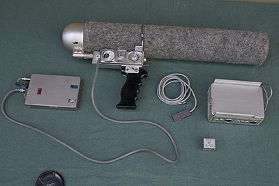 To counter this problem I made some modifications to the hand-held pre-amplifier (SMR) by adding an extra stage of pre-amplification. To do this I had to enlarge the rear section of the SMR to house the extra amplifier and a 9 volt battery to power it. I also added a pistol grip, an XLR connection for the microphone (MKH 815T), and a connection for a headphone. This necessitated some extra plugs at the recorder end. No doubt these modifications would upset the purist collector but they made for a very useable and sensitive system. Items available: - Nagra SN Senheiser MKH 815T 2 off Nagrastatic Microphones. Nagra LPS Pilot tone transfer unit. Nagra SGX pilot tone crystal. Timber presentation case. Leather case for two Nagra SN’s Leather case for one SN. SMR preamplifier (at the moment I cannot find the original back). AKG microphone module for SMR. Assorted cables and a quantity of tapes. If anyone follows the prices of this sort of gear I would appreciate their comments. http://www.dvinfo.net/forum/images/a...attach/jpg.gif |