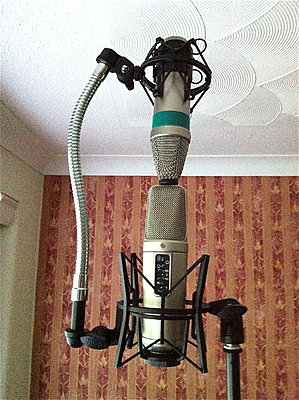 Colin...thanks for the images! I enjoy seeing the inventive way people arrive at their mounting solutions. I have found an interesting 'Blumlein Array' mounting solution using my SHURE A27 and Grace SB-66. It holds my AKG c414 XLS pair and it gives me confidence the mics. are safe.