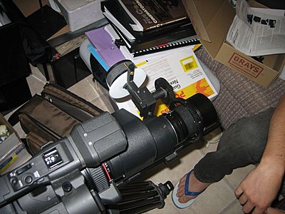 I've been adjusting the balence by moving the quick release plate back before locking it in place. When I get the FD mount (any day now) I'll set the whole thing up and take some pictures. |
