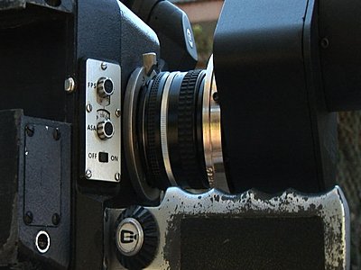 In setting up the Extreme to play on the SI2K, I have used the CP16R camera as a sort of test bed, no film shot though. 'Tis a pity the Mini35 and Extreme did not come upon the scene some 10 years ago. What could have been for Super16, maybe? If I am lucky there should be some happy snaps below. The view through the eyepiece dioptre is not all that special. However it does illustrate that the front-of-Letus and relay optics see the "A" and "F" blocks of the Lemac Chart. The groundglass motor was also not running in this test. The moire pattern is due to the CP16R viewfinder groundglass being a sliver cut from a coherent fibre bundle and the pixel rows of the Z1 camcorder which I used for the grabs both interacting with the lines in the blocks. Sorry about the stretchy images. I haven't worked out how to make the frame grabs play nice yet. The CP16, like the SI2K offered the option of using Nikon lenses via a special lens adaptor, which is why it became the test bed. The purpose of this was that if the standard Angenieux zoom became damaged on a hazardous news assignment, chances were there would be one or more nearby stills-shooters with Nikons in hand. Relay in this instance was a Nikon f1.4 50mm. The Extreme's EX1 achromatic dioptre remains in place. This arrangement will not be optimal for 3xCCD 2/3" video cameras which require optics optimised for the separation prism in these cameras, a costly business. It should be sort-of okay for single 2/3" CMOS sensors like those the SI2K uses though a dedicated HD relay would be better. Last edited by Bob Hart; August 17th, 2008 at 04:40 AM. Reason: added text |