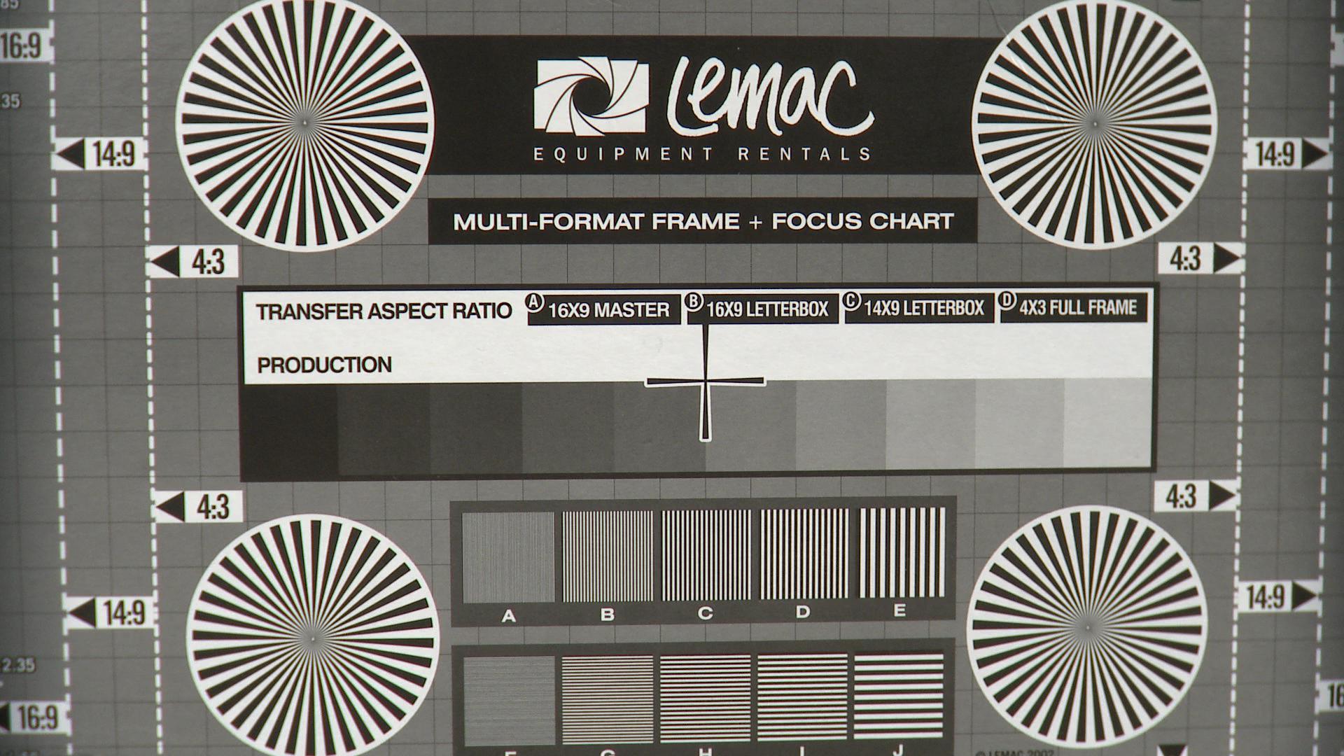 The camera was an EX1. The lens was a Nikon f1.4 50mm at f2.8. The zoom was set at just a trace over midway between 25mm and 40mm. The Nikon lens is approximately 450mm from the chart versus the 1M when using the 24mm wide motion picture frame from the groundglass. This may account for an apparent edge softness in the image as the view to the Nikon lens now seen is wider. The groundglass texture remains sharp to the edges. I have observed when the focus assist is selected on, that the EX1 sensor is a little noisy with "white" grain with no gain selected on. The apparent resolution should be discounted by approximately 5% as I am a little tighter on the chart than 16:9 The grabs were exported from Sony XDCAM clip browser to .bmp and converted to .jpg in MSPaint. Last edited by Bob Hart; November 9th, 2008 at 10:52 PM. Reason: missing text |