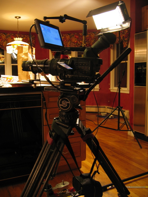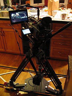 I've found focusing very difficult, especially on the wider lenses. The 17mm was the most difficult and I think it looks soft. The focus plane for all the shots is at about where the tomato is. I don't have an HD monitor and instead was using a 7" Panasonic LCD SD monitor. There are pics attached of my setup. You will also see if you look closely to the right edge of the frame a little bit of movement from the vibrating Ground Glass. I wasn't zoomed in enough. Even though I go past the safe area in the HVX viewfinder, you still have to go a bit further. This ruined a lot of the tests I did outdoors (that's why we call them tests!!) http://homepage.mac.com/getken/hdtes...Theater47.html |