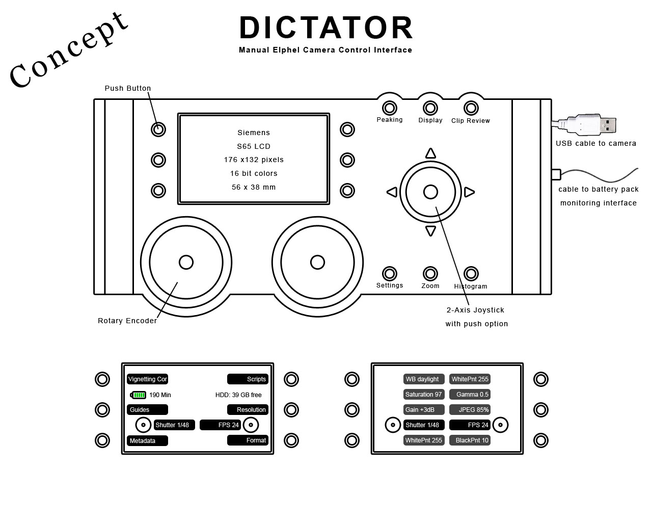 Here is the first concept for the DICTATOR Camera Control Interface.