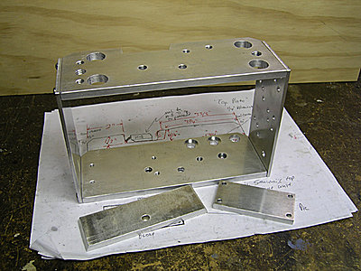 Roughed out the cage yesterday. All four plates cut to size. Top has the Samurai mounting hole in place and the notch for the Anton Bauer D connector. This stock is from my junk pile of aluminum scraps. The top and bottom had black anodize and the sides... an old 19" rack cabinet plate... were painted black. All will be stripped off and re-anodized black when the machining is complete. http://www.webtfg.com/roughcage.jpg The heat sink for the Samurai is almost done save for adding the 1/4" hole to line up with the tapped version in the top of the unit. A knob with 1/4 x 20 thread will pass down and into that tapped mount to allow the Samurai to be swiveled out for removal/installation of the SSD or hard drive. http://www.webtfg.com/heatsink.jpg Special heat transfer double-sided tape, courtesy of 3M, will be used to secure the heat sink to the top of the unit. Right now the cage and heat sink weight in at 20 ounces. That's before I "Swiss cheese" the cage with both tapped and clear through holes. Some for mounting whatever and all for air flow and to reduce the weight.