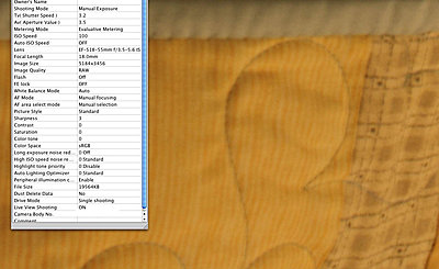 The photo was of a sleeping mother & child, so I blurred the subjects since they wouldn't appreciate being posted on the web as the subjects of tech talk. Other than that, the photos are completely untouched. The only light was a tiny little lamp at the other end of the room- it was pretty damn dark in there. You can see the detail at 100% with all the camera specs next to it for reference. I bracketed just to see how much I could push the lens, and I have to say, even at a 3.2 second / 100 iso exposure, the photo looks great! The grain at 800 is completely passable- soft, even, rather than that digital harshness you get sometimes with cheap digital cameras. The kit lens went below my expectations for video, and above them for stills!