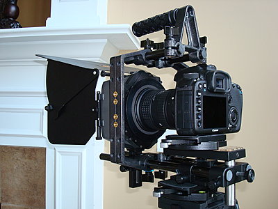I know the one that you are speaking of.... "the Dave Clement" rig. It is smart and beautiful like my wife, but I can afford my wife for now and not that rig. It is so well planned and I want one. But it did inspire the rig I have now. I just got the uni-strut and top handle for it. I am missing a follow focus (love the Durus) and their awesome swing away matte box. But I will have that Follow Focus someday soon. Here's my updated rig (it's sort of a semi-pseudo/half-assed Dave Clement rig) Its a hybrid of about 75% Cinevate and about 25% CPM film tools. Read my review here (post #17 on the thread) http://www.dvxuser.com/V6/showthread...=206311&page=2