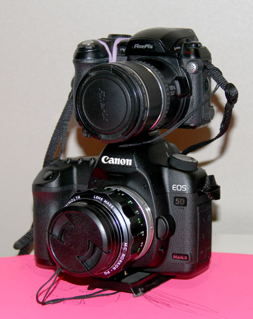 Video people doing photography - photogs doing video. I think I've hit on a way to really make it possible without having to either miss a moment on Video to get the Photo or vise-versa. Here's my solution. :) (5D II with our daughter's Fuji 5500 [Toy] - and taken with the 7D) |