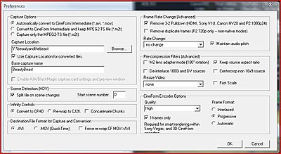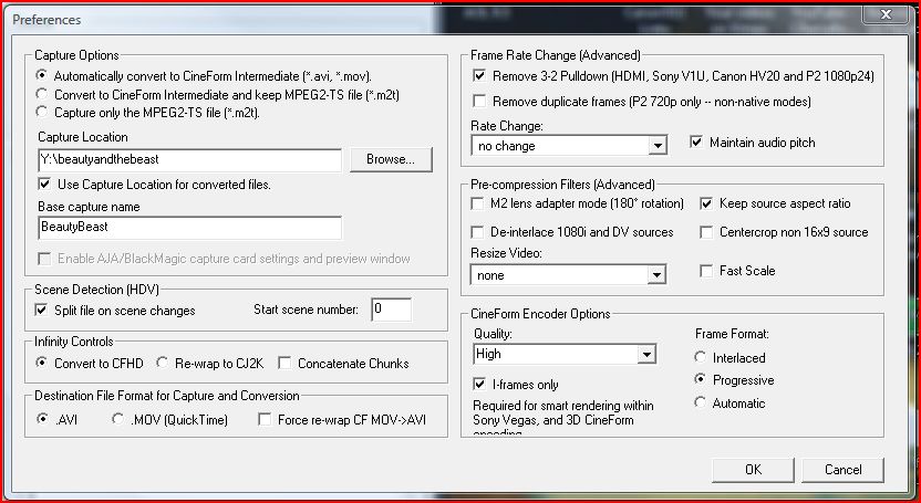 Do you use Cineform? Should I check the "Deinterlace" or the "Convert to 24p(NTSC only)" - right now I just have "Maintain source frame format" checked