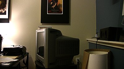 I had the HV20 on sticks in a low-light environment, captured the feed uncompressed digitally and saved to the computer as ProRes HQ 422. Between the two PNG shots, I only changed the modes between TV and CINE - this makes it perfect for you to open the shots up in Photoshop, drop each onto a seperate layer, and switch between the layers looking for differences. My own findings: a) more detail in TV mode b) less detail, and more latitude in CINE mode b) distracting grain in TV mode, next to no grain in CINE mode. The latitude in CINE mode is very apparent in these tests - to the left, you see that there is less blow out near the lamp's light, and you can ALSO see into the shadows under the television and speaker on the right in CINE. EDIT: The uploads of these PNG files have failed 4x in a row.. I'm not over the size limit, so.. not sure what's up. EDIT 2: I've spent 30 minutes trying to upload.. switched to smaller JPGs, didn't help. EDIT 3: Finally.. the images are up.