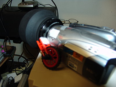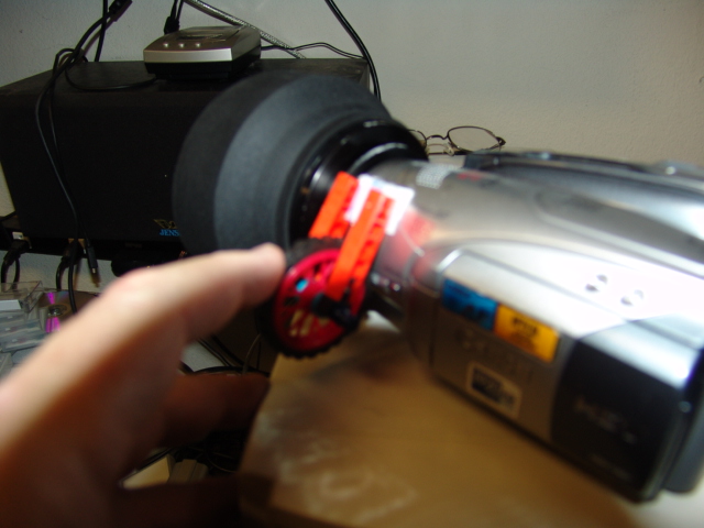 This prototype is just attached with velcro, and the rubber wheel lays right on the tine focusing roller. You can actually use your finger on the wheel just like it is a 35mm lens and it I am surprised how easy it works-- even with this rigged system. With just a little work, it could even look professional. See photos below, but forgive focus issues...