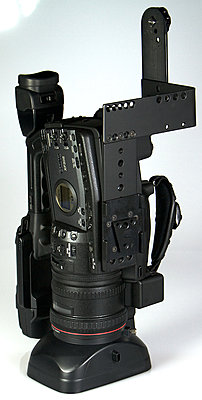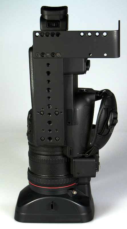 My EX1 system was not a good fit for these fantastic Canon Cameras. There are pictures below showing the system. The tripod plate provides a very stable flat surface with lots of 1/4" and 3/8" threaded holes as well as 4mm threaded holes for many mattebox systems. I am working on a rail system for this and other cameras right now. The wing is for holding wireless mics or a NanoFlash or KiProMini. There are also NanoFlash arms available for mounting more mics and NanoFlash. The shoulder brace comes off easily and quickly and can be set up with a battery (AB Goldmount or IDX V-mount) plate or just with velcro for any battery. Some of the photos also show the optional VCT-14 wedge that fits Sony style plates or the Canon TA-100 quick release system (I use this myself it is great). I am making a small batch to start. If you are interested in this system, contact me, I will be shipping initial units in early January. One more note, just like this camera the shoulder system can be flipped for left eye dominant shooters. Merry Xmas all! olof@westsideav.com 603.383.9283