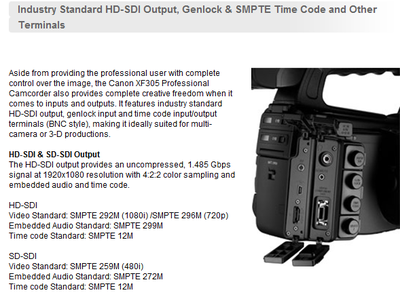 As I understand it, there are no options for progressive output at full HD on the camera, just 60i like you are seeing. The SMPTE 292M is capable of it, but it's not implemented in this camera. I don't know if someone (AJA, Matrox, BMD, etc.) makes a box that will convert in real time to what you want. Canon U.S.A. : Professional Imaging Products : XF305 Mark Last edited by Mark Watson; November 21st, 2014 at 07:34 AM. Reason: Reloaded picture. |