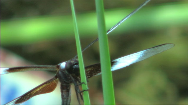 These initial frames are of dragonflies, shot from about ten yards away. No cropping, full frame shown. With that much magnification, you can't really follow them. Dragonflies are territorial, though, and have a regular "station" they return to after chasing off any intruders. All you have to do is focus in on their station and wait for them to come back. Hardest part is keeping the camera still. Even on a heavy tripod, wind shake is a problem. Gotta love that prime Nikon glass. Martin